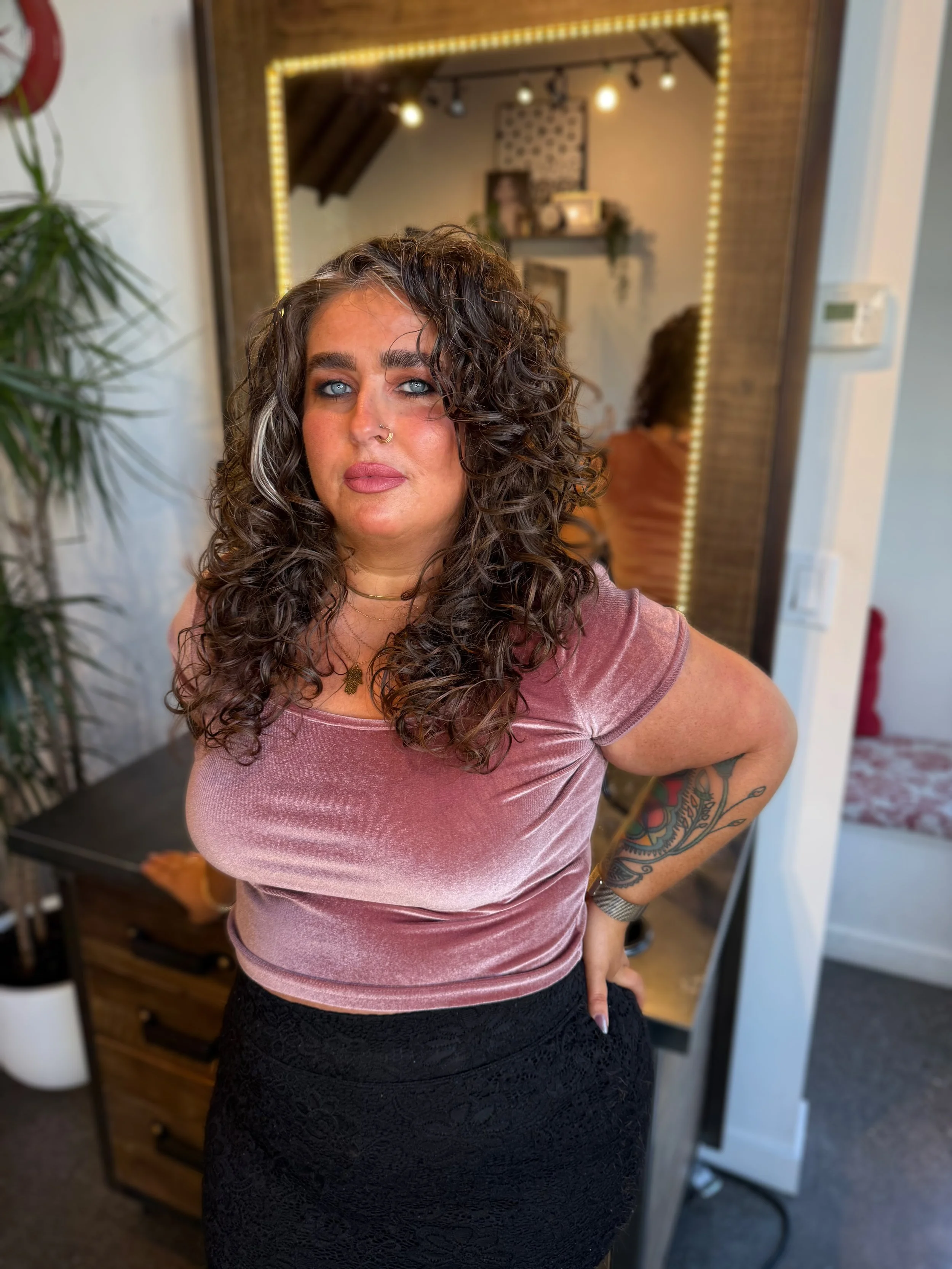 At Scarlet, our mission is to provide a laid-back yet luxurious safe space where clients can unwind, while enjoying personalized hair services. We are committed to using the best, ethically sourced, low-tox products that promote healthy hair and a healthy planet. Our goal is to empower clients to express their individuality through unique styles and personalized services. By nurturing a welcoming atmosphere we ensure that every client leaves feeling rejuvenated, confident, and appreciated.